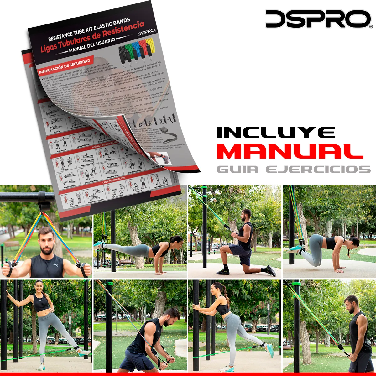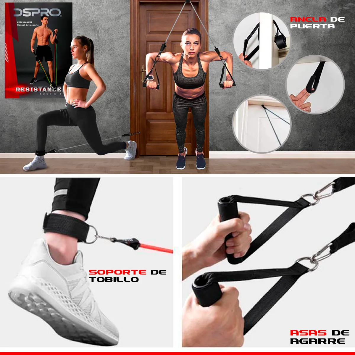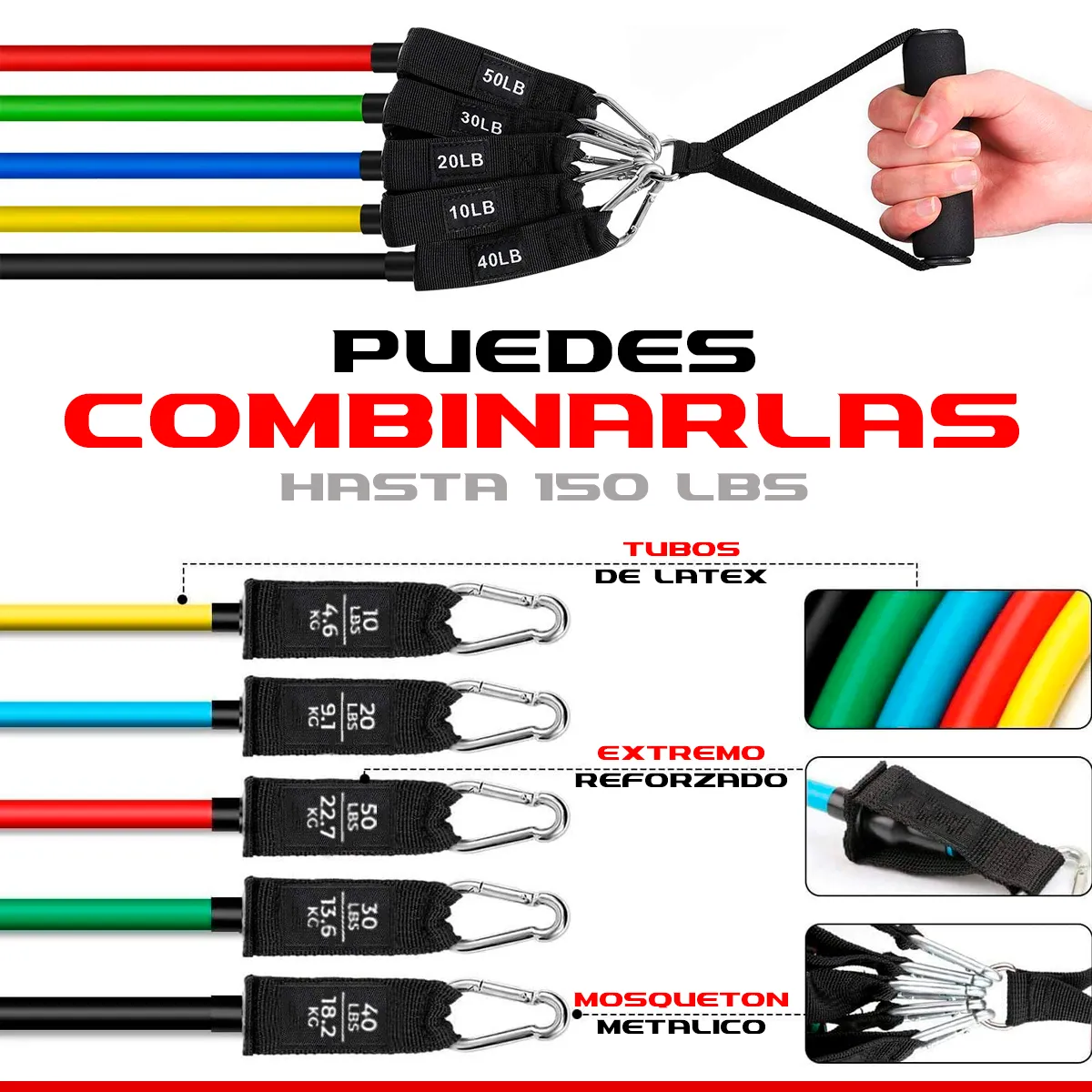 -> 5 Ligas Tubulares de resistencia (Mosquetones de metal)