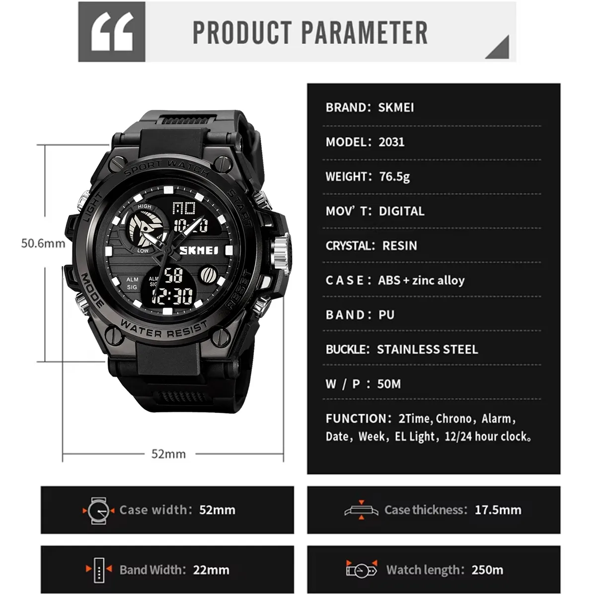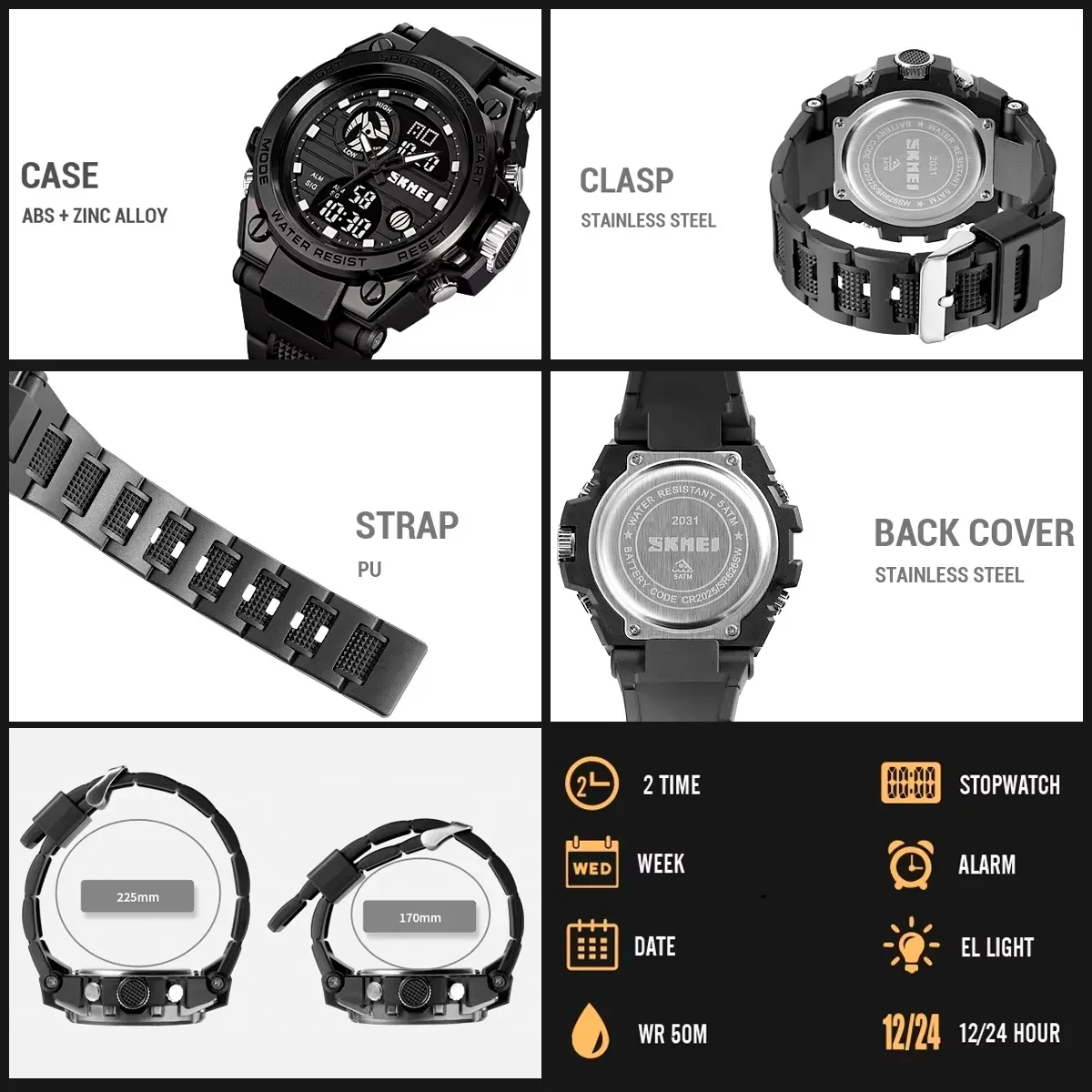 Ideal para entrenamiento o vida diaria, el SKMEI 2031 ofrece control del tiempo con diseño moderno. Cómodo, visible y multifuncional.