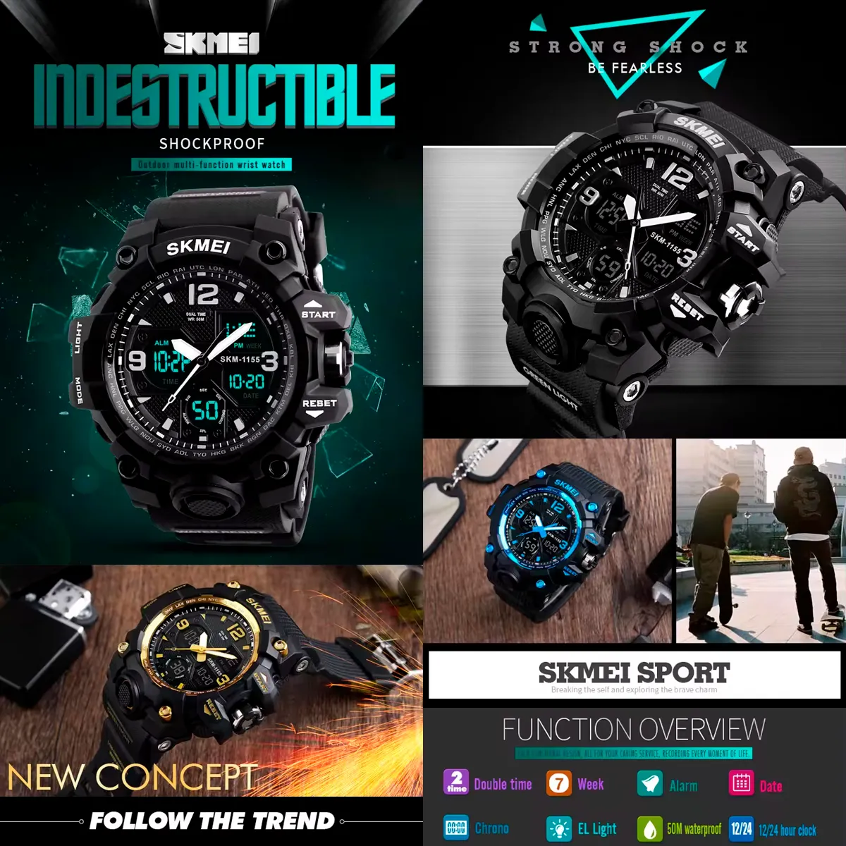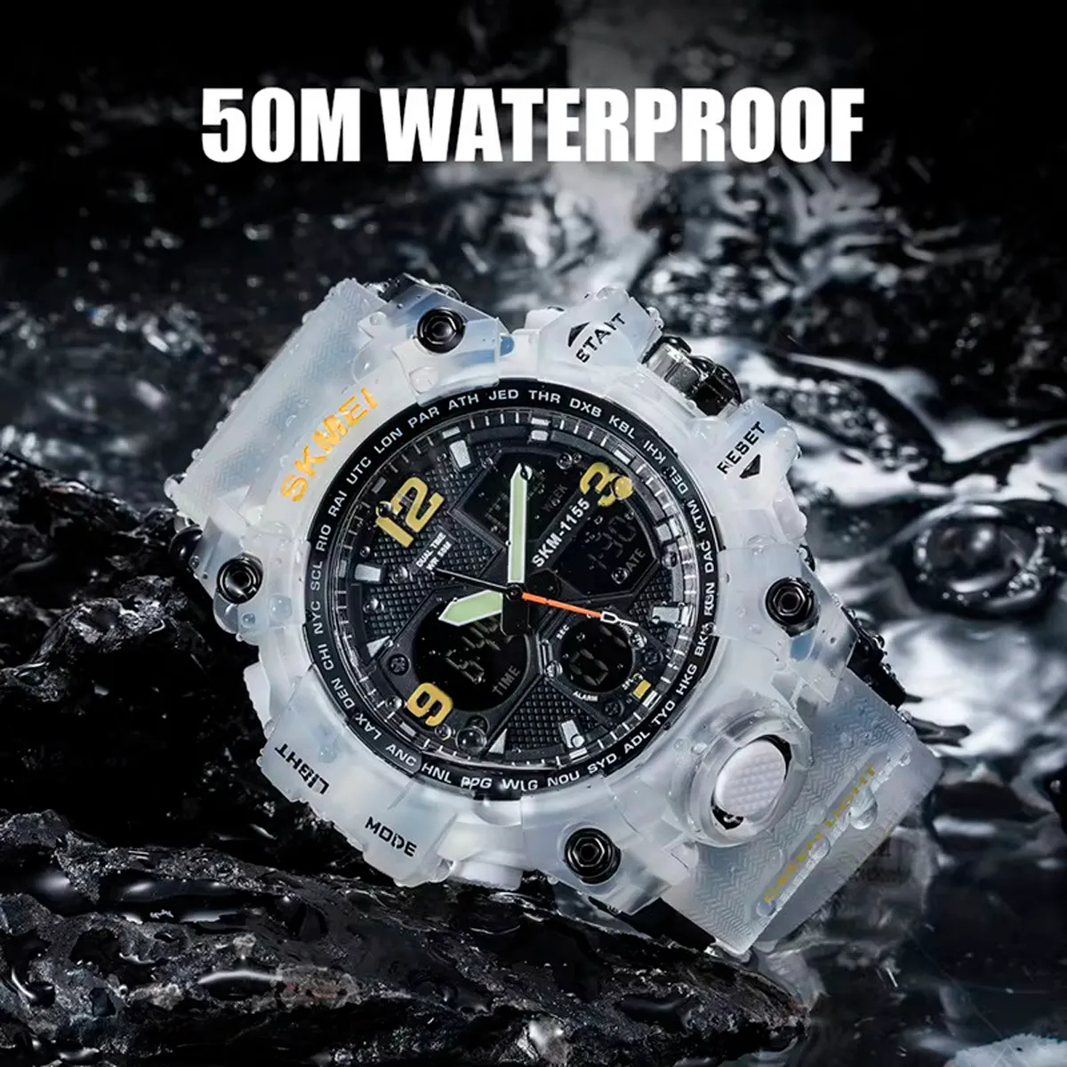 Descubre el equilibrio perfecto entre funcionalidad y estilo con el SKMEI 1155. Este reloj analógico-digital es ideal para quienes buscan precisión y un diseño moderno. Con funciones como Cronómetro, alarma y resistencia al agua de 5 ATM (50 metros), es el compañero perfecto para tus actividades diarias.
